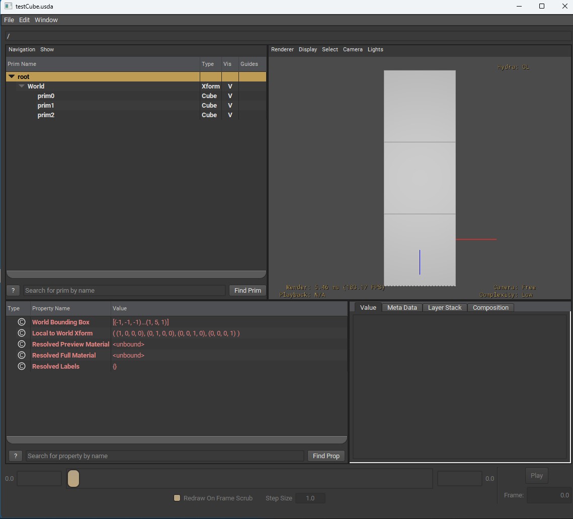 Below you see a USD stack of spheres, unit 1 radius (default), default position - note the gap.