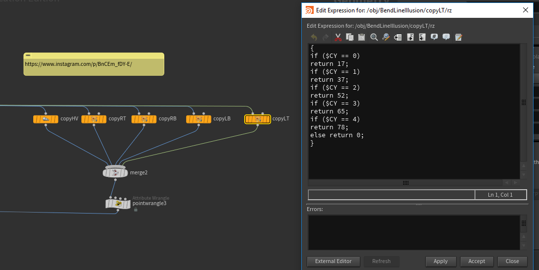 of the line (with pointwrangles of course).In this case the image was projected onto a grid (we could have used it as a background camera image but this allows easy adjustment to center the image).
