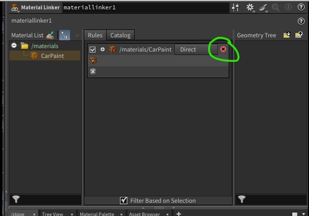 the X button for light linker and material linker does