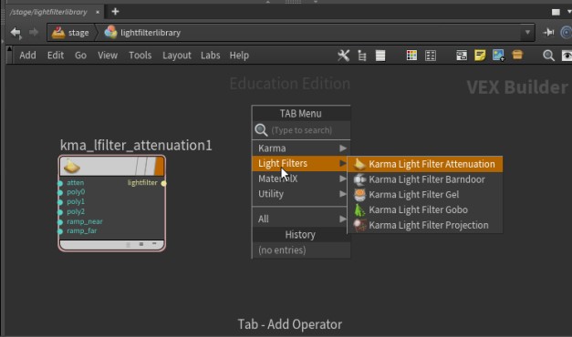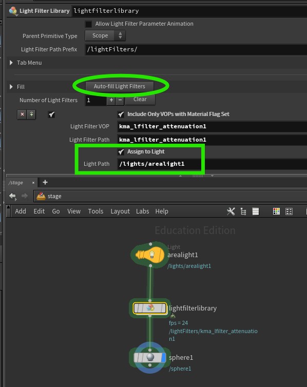 added using the lightfilterlibrary node and assigned to a